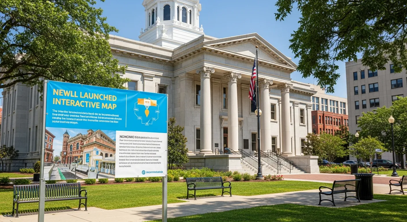 The interactive map features detailed descriptions and images of over 50 landmarks, including the Old Courthouse and the Riverside Park Pavilion. The map will be available for mobile and desktop users and is expected to promote exploration of local heritage sites.